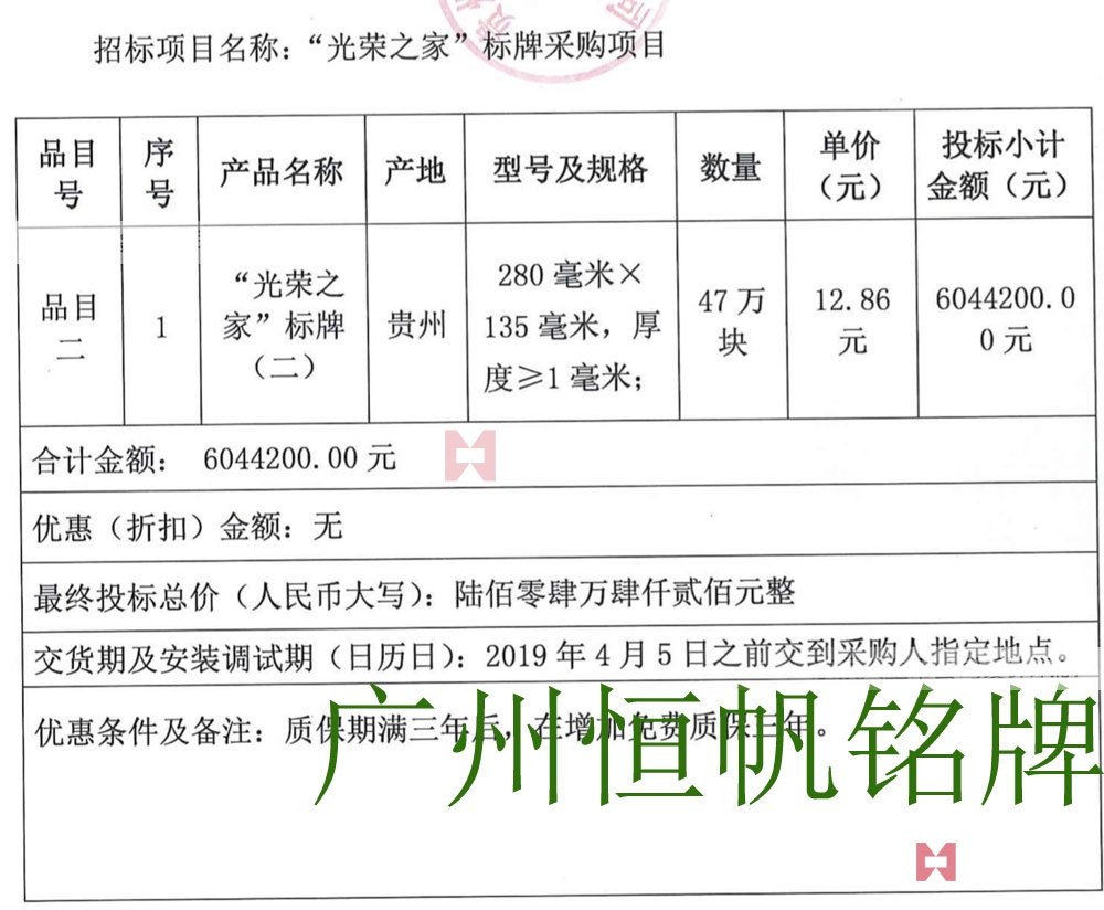 項目名稱 | 安徽省民政廳光榮牌采購 |