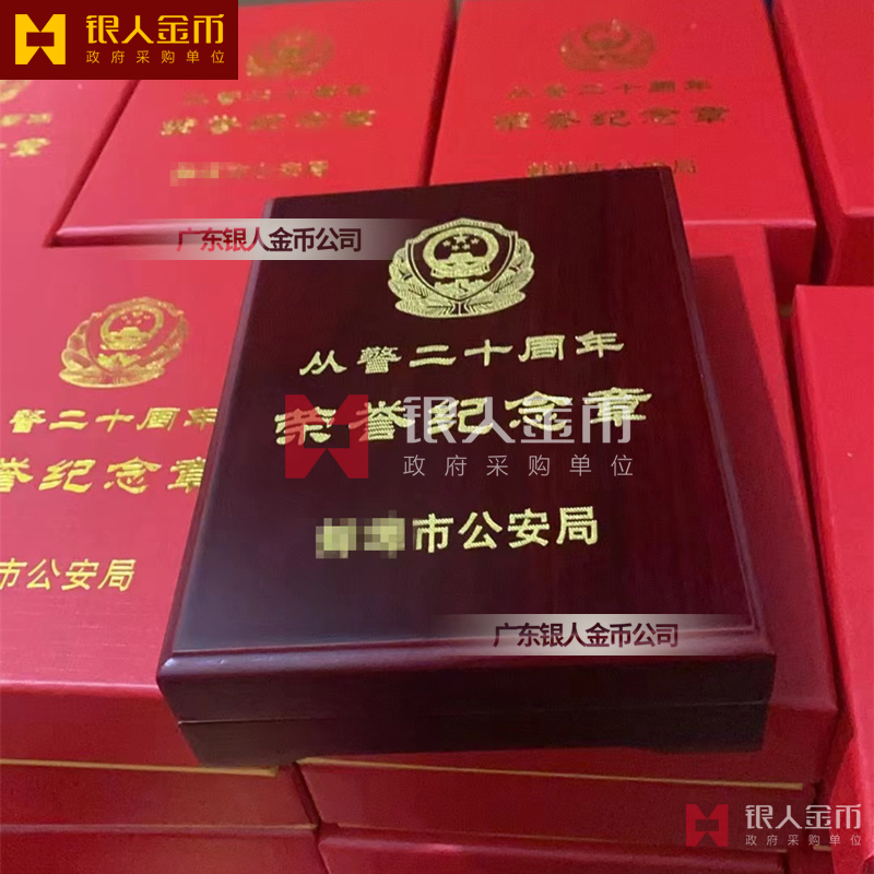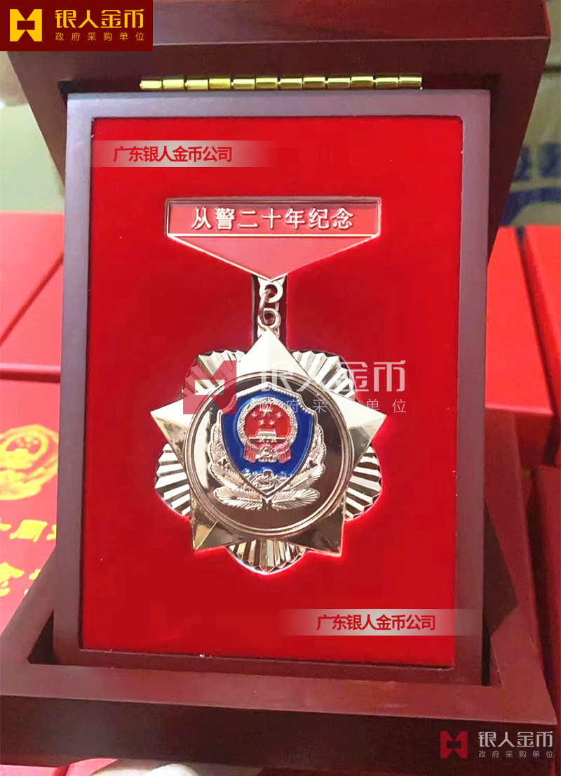 從警紀念章的底下主體部分都是警徽,上面橫檔部分是不相同的,有:從警十年紀念,從警二十年紀念,從警三十年紀念,從警四十年紀念不同的,從警十年表面是鍍銅色,從警二十年表面鍍金色,從警三十年獎章,從警四十年獎章,表面鍍金色 ,整體將從警獎章,鑲嵌在三折的立式木盒上面,木盒外面配有紙盒,整體做工精美,木盒紙盒上面都刻有警徽、從警年限等。從警紀念章,從警獎章,從警獎章,從警獎章定制,從警獎章定制,從警榮譽紀念章,從警榮譽紀念章。