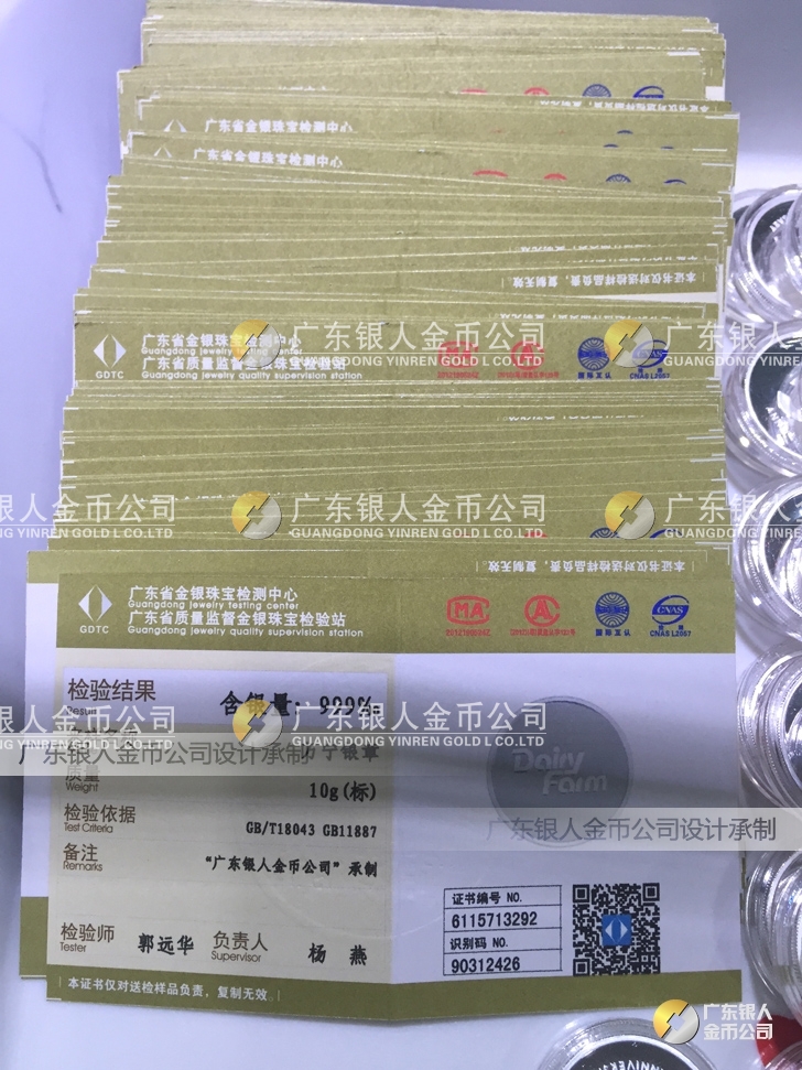 廣東銀人金幣公司承接客戶個性化定制的金銀幣、金銀章、金銀條、金銀牌、金銀盤均由國家質(zhì)監(jiān)部門、嚴格檢測、權(quán)威鑒定: