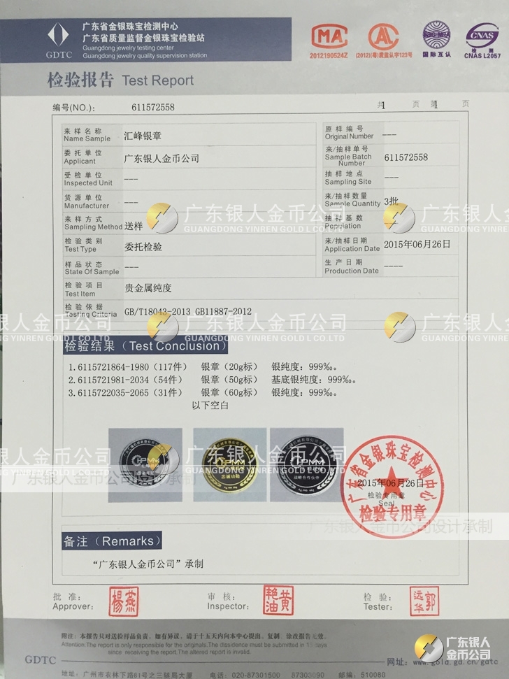 【金銀品質】 國家檢測鑒定、真假防偽查詢