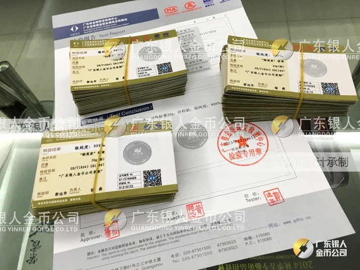 廣東銀人金幣公司承接客戶個性化定制的金銀幣、金銀章、金銀條、金銀牌、金銀盤均由國家質監部門、嚴格檢測、權威鑒定:
