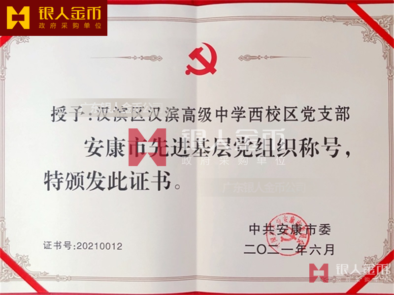 中共安康市委組織部兩優一先優秀共產黨員、優秀黨務工作者和先進基層黨組織獎牌獎章證書(圖)