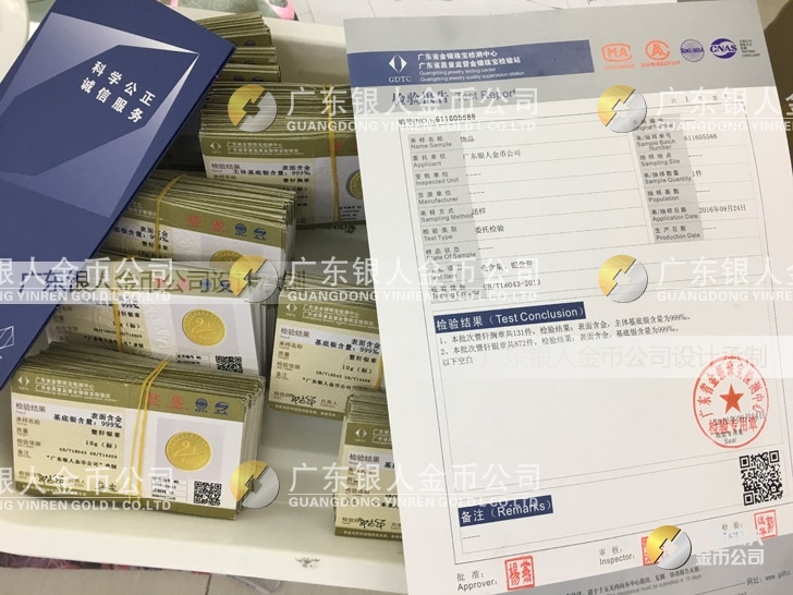 廣東銀人金幣公司承接客戶個(gè)性化定制的金銀幣、金銀章、金銀條、金銀牌、金銀盤均由國(guó)家質(zhì)監(jiān)部門、嚴(yán)格檢測(cè)、權(quán)威鑒定: