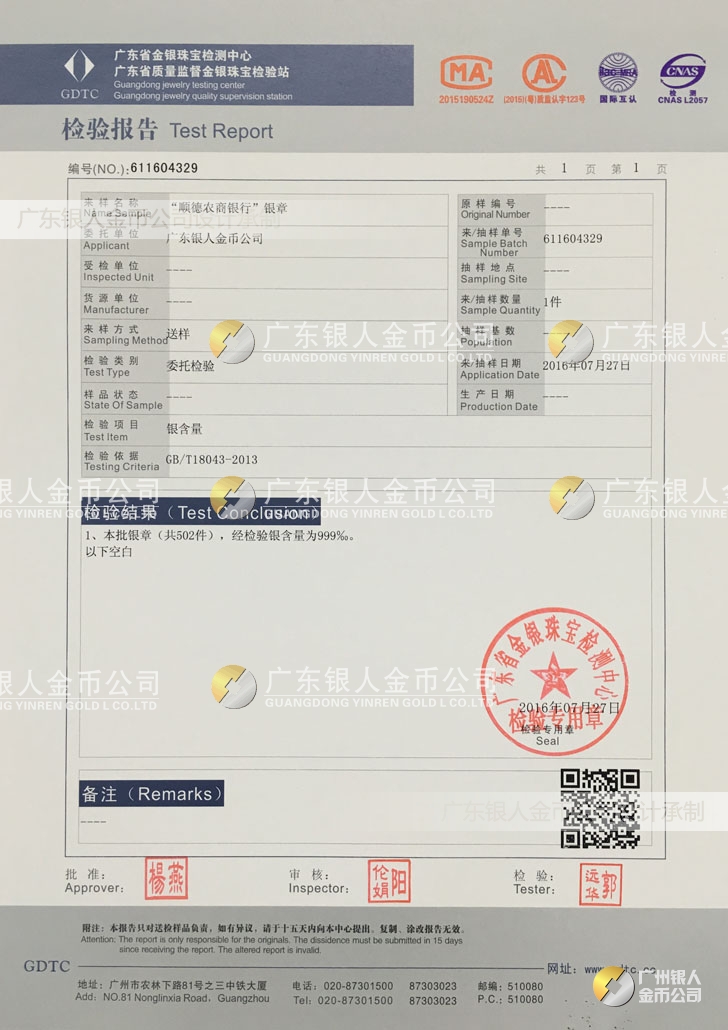 【金銀品質】 國家檢測鑒定、真假防偽查詢