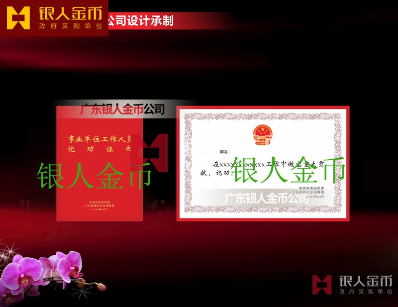 【證書制作】 廣東銀人金幣公司-榮譽證書制作廠家