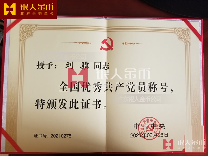 【證書制作】 廣東銀人金幣公司-榮譽(yù)證書制作廠家